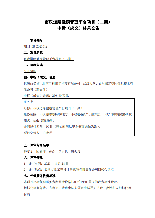 市政道路健康管理平臺(tái)項(xiàng)目(二期)中標(biāo)(成交)結(jié)果公告