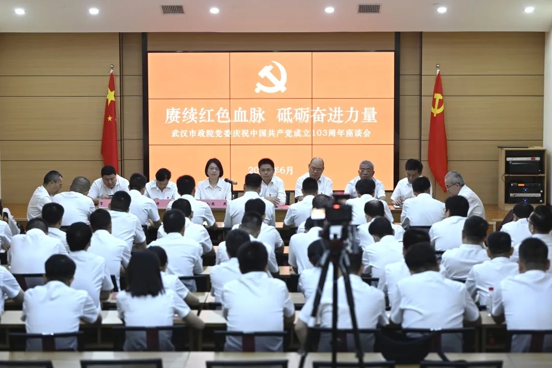 ? ? ? ? 6月29日,武漢市政院召開“黨建引領(lǐng)謀發(fā)展 守正創(chuàng)新譜新篇”主題黨日暨慶祝中國共產(chǎn)黨成立103周年座談會,深入貫徹落實(shí)習(xí)近平總書記關(guān)于國有企業(yè)黨的建設(shè)重要思想,參會黨員干部重溫入黨誓詞,在武漢龍?jiān)醇t色報(bào)刊博物館共同參觀中國共產(chǎn)黨自成立以來不同地區(qū)、不同時期具有珍貴歷史文獻(xiàn)價值的報(bào)紙、期刊、實(shí)物,學(xué)習(xí)感悟黨的百年奮斗歷程,暢談無限愛黨深情,繼續(xù)以高質(zhì)量黨建引領(lǐng)高質(zhì)量發(fā)展的蓬勃朝氣,扎實(shí)推進(jìn)黨紀(jì)學(xué)習(xí)教育,以城投集團(tuán)“十四五”發(fā)展戰(zhàn)略為指引,加速打造“行業(yè)領(lǐng)先,國內(nèi)一流的城鄉(xiāng)建設(shè)領(lǐng)域整體解決方案供應(yīng)商”。