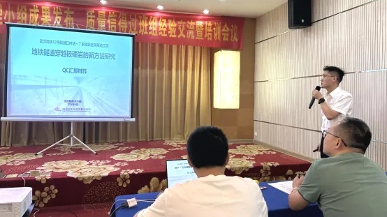 武漢市政院“拾光隧道QC小組”組員龍凡對“地鐵隧道穿越極硬巖的新方案研究”課題進行了成果發(fā)布。“拾光隧道QC小組”為解決地鐵隧道穿越極硬巖傳統(tǒng)方法安全難以保證、工作效率較低等痛點問題,研發(fā)了一種地鐵隧道穿越極硬巖的全新技術(shù)方案,攻克了復雜地質(zhì)和敏感環(huán)境兩大難題。該研究成果在“武漢地鐵12號線港口村站~丁家咀站區(qū)間隧道工程”中,實現(xiàn)盾構(gòu)穿越極硬巖深孔爆破預處理在武漢軌道交通地下區(qū)間的首次應用。“拾光隧道QC小組”對該創(chuàng)新成果進行了標準化建設,形成了通用設計圖和成套技術(shù)方案,現(xiàn)已在全公司推廣應用。