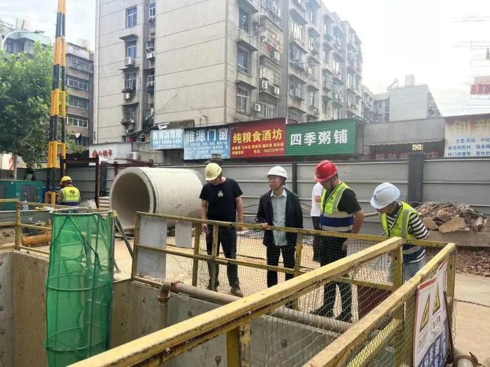 ? ? 紅巷(都府堤一解放路)、秦簡(jiǎn)街(友誼大道一沙湖)排水工程值班負(fù)責(zé)人進(jìn)行節(jié)日期間的安全巡查工作,要求施工現(xiàn)場(chǎng)頂管段工作前進(jìn)行安全交底、氣體檢測(cè),明挖段鋼板樁施工前做好地下管線調(diào)查工作。
