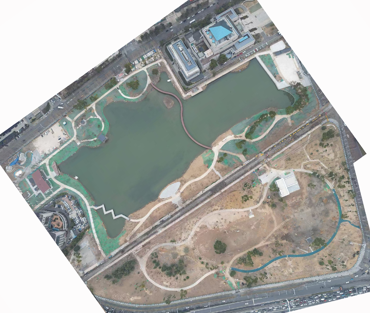 ? ? 后襄河公園綜合改造提升項目于2023年10月啟動建設(shè),分階段實施。目前己基本完成主體工程,正進(jìn)行相關(guān)完善和收尾工作,預(yù)計2025年2月底開園。實施過程中既有業(yè)主單位江漢區(qū)園林局的鼎力支持,也有江漢區(qū)發(fā)改局、城管局、水務(wù)局、環(huán)保局等主管部門的辛勤付出,為項目的順利實施提供了全方位的上層支撐。本工程各參建單位在武漢市政院的統(tǒng)籌協(xié)調(diào)下通力合作,將圖紙上的美好愿景一一變?yōu)楝F(xiàn)實,無論是跨湖觀景棧橋的優(yōu)雅身姿,還是兒童樂園的歡聲笑語,亦或是一磚一瓦一草一木,都將是匠心獨運、精益求精的最佳見證。