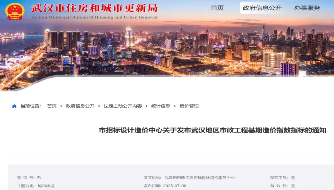 ? ? 近日,武漢市住房和城市更新局官網(wǎng)發(fā)布了《市招標(biāo)設(shè)計(jì)造價(jià)中心關(guān)于發(fā)布武漢地區(qū)市政工程基期造價(jià)指數(shù)指標(biāo)的通知》,標(biāo)志著武漢市成為全省首個(gè)發(fā)布市政工程指數(shù)指標(biāo)的地區(qū)。本造價(jià)指數(shù)指標(biāo)由武漢市政工程招標(biāo)設(shè)計(jì)造價(jià)服務(wù)中心和武漢市政院共同編制完成。