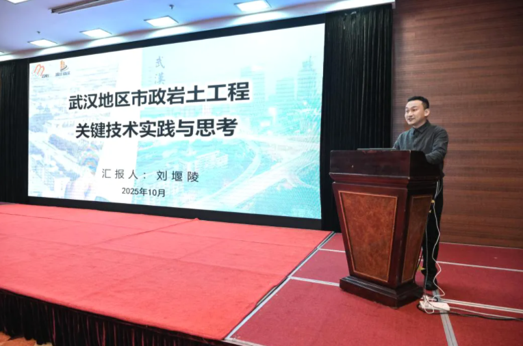 會上,武漢市政院巖土專業(yè)高級工程師劉堰陵作為報告嘉賓,作了題為《武漢地區(qū)市政巖土工程的實踐與思考》專題報告,分享了武漢市政院巖土博士創(chuàng)新工作室近一年來的三項核心成果。