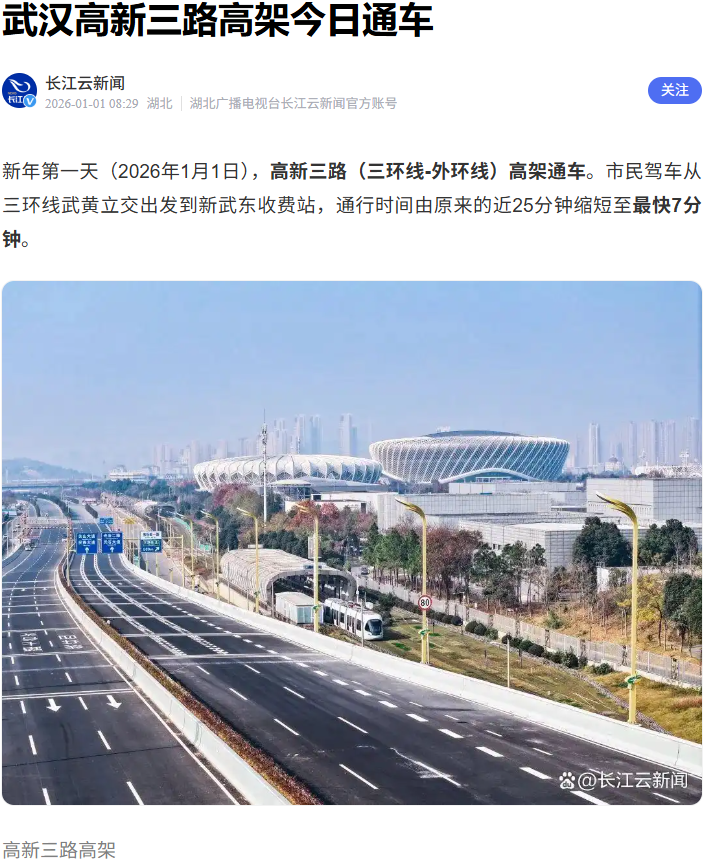 當(dāng)?shù)谝豢|晨光灑在嶄新的高架橋面 光谷交通版圖迎來重要時刻