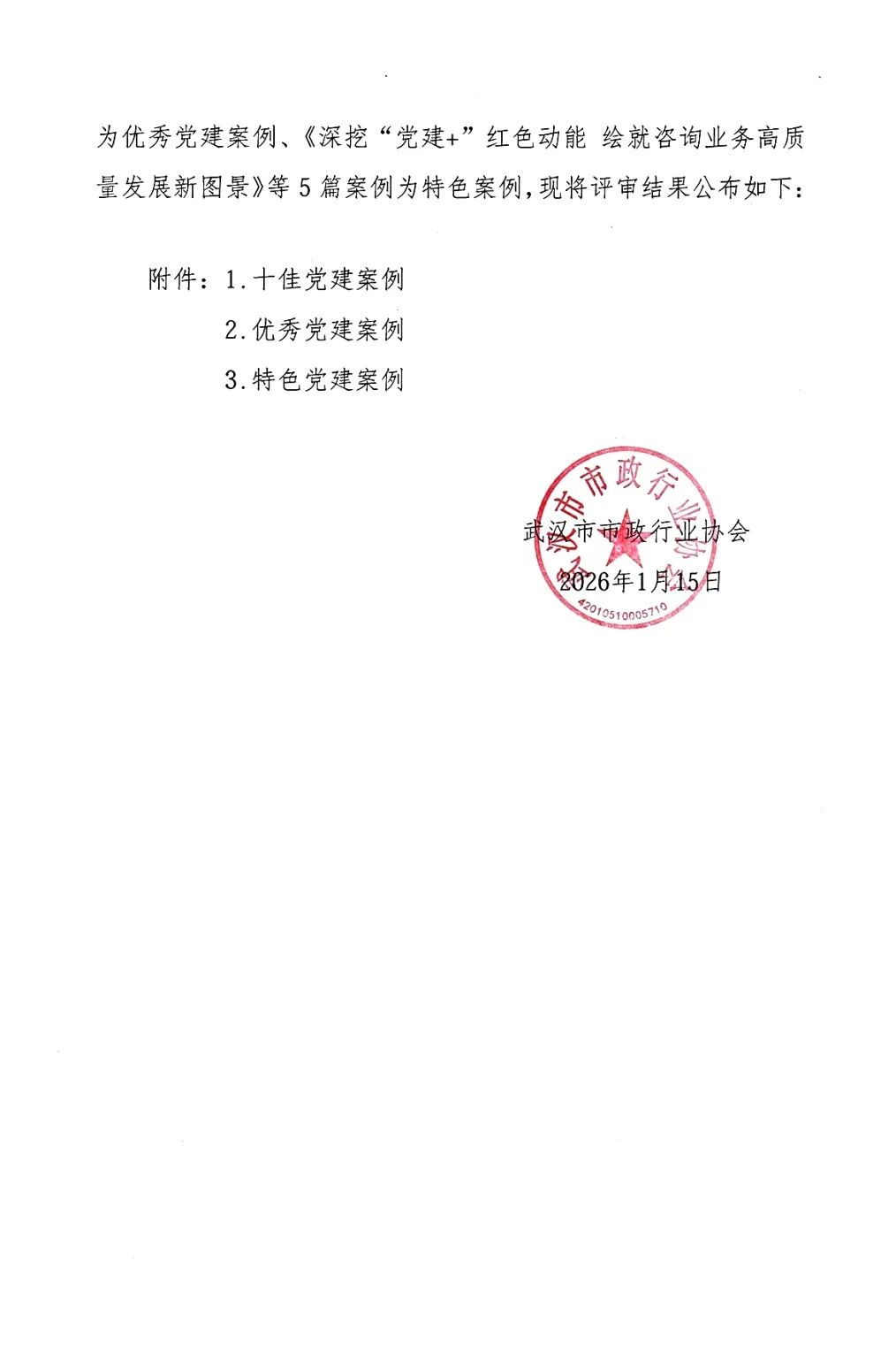 ? ? 近日,武漢市市政行業(yè)協(xié)會(huì)發(fā)布《2025年度武漢市市政行業(yè)黨建案例評(píng)選結(jié)果》,武漢市政院申報(bào)的創(chuàng)新實(shí)踐案例——《“雙培工程”鑄尖兵,黨建引領(lǐng)促發(fā)展》入選“十佳黨建案例”。