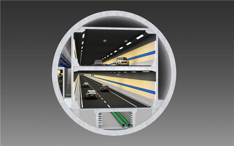 兩湖隧道工程北接秦園路和東湖路,南連三環(huán)線,分為東湖段、南湖段,全長(zhǎng)約19公里。兩湖隧道采用“隧-路-隧”的總體建設(shè)方式,隧道內(nèi)設(shè)計(jì)為上、下兩層,分別行駛不同方向的車輛,節(jié)約了用地、減少拆遷成本。南湖段盾構(gòu)直徑為15.5米,超大直徑設(shè)計(jì)居國(guó)內(nèi)之首,是國(guó)內(nèi)最長(zhǎng)、世界規(guī)模最大的城市湖底雙層隧道。