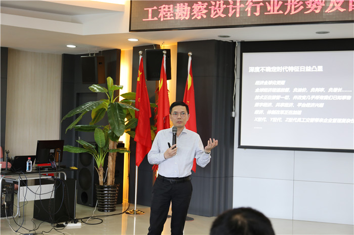 2020年7月24日,公司在西二樓會議室舉行工程勘察設(shè)計(jì)行業(yè)形勢及國資改革政策環(huán)境分析培訓(xùn)會,邀請?zhí)鞆?qiáng)管理顧問創(chuàng)始人、總經(jīng)理祝波善對當(dāng)前行業(yè)發(fā)展形勢及相關(guān)政策進(jìn)行解讀。公司領(lǐng)導(dǎo)班子、總經(jīng)理助理、公司副總工程師及公司所屬部門(單位)正副職管理人員參加了培訓(xùn)。
