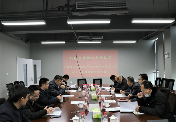 2021年3月3日下午,武漢市政設(shè)計(jì)院與武大巨成結(jié)構(gòu)股份有限公司在漢簽署戰(zhàn)略合作框架協(xié)議,雙方將充分發(fā)揮各自優(yōu)勢(shì),創(chuàng)新合作模式,拓寬合作渠道,在結(jié)構(gòu)加固技術(shù)領(lǐng)域,針對(duì)新設(shè)備、新材料、新工藝的應(yīng)用開展交流合作。武漢市政設(shè)計(jì)院總經(jīng)理姚華、副總經(jīng)理陳建斌、總經(jīng)理助理呂錦剛與武大巨成公司董事長(zhǎng)高作平、總經(jīng)理萬雄衛(wèi)、副總經(jīng)理廖杰洪、副總經(jīng)理張暢及相關(guān)人員出席了簽約儀式。