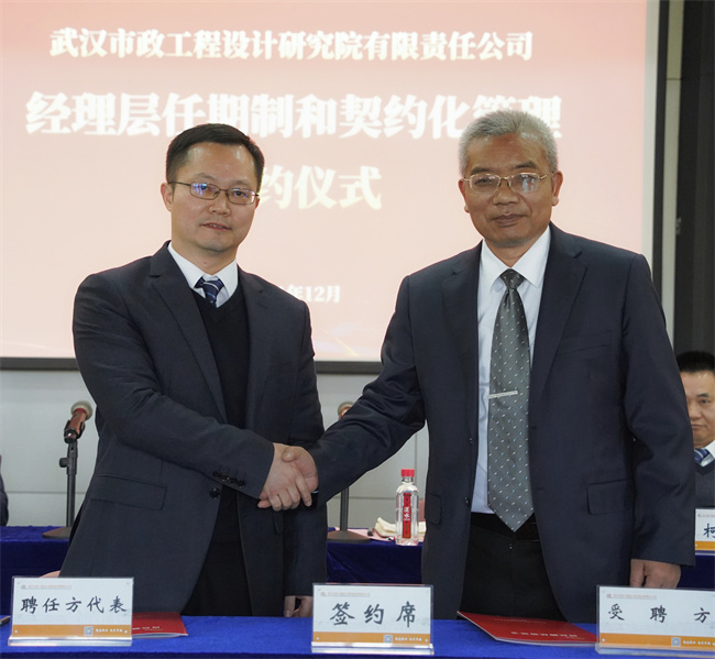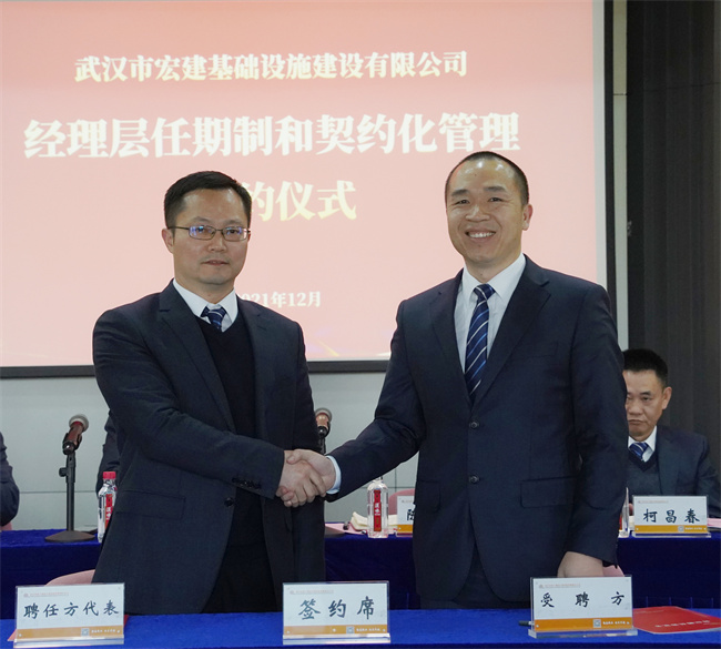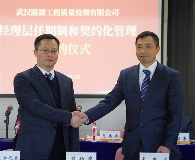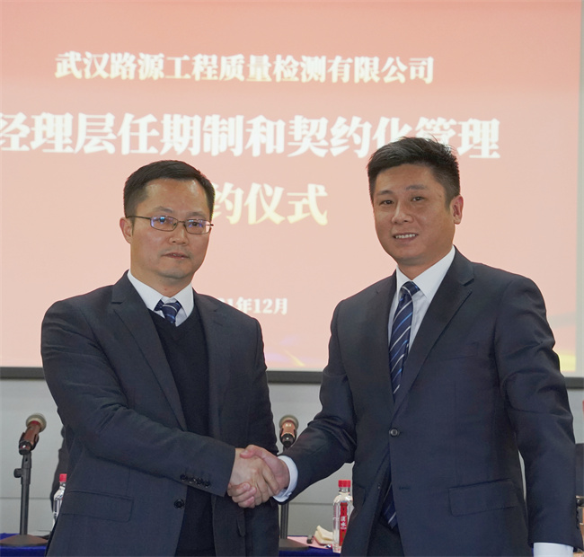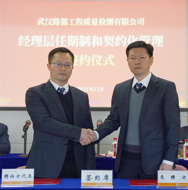隨后,公司黨委書記、董事長武興治與黨委副書記、總經(jīng)理陳建斌簽署崗位聘任協(xié)議書,陳建斌分別與公司經(jīng)理層成員和所屬武漢路源工程質(zhì)量檢測有限公司、武漢市宏建基礎(chǔ)設(shè)施建設(shè)有限公司經(jīng)理層成員簽署崗位聘任協(xié)議書。