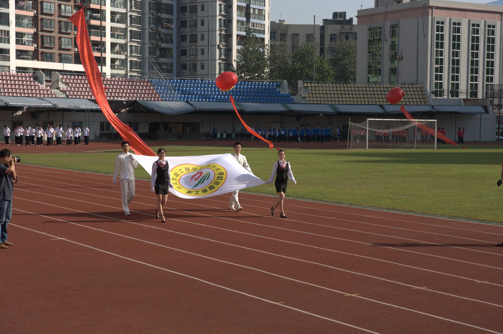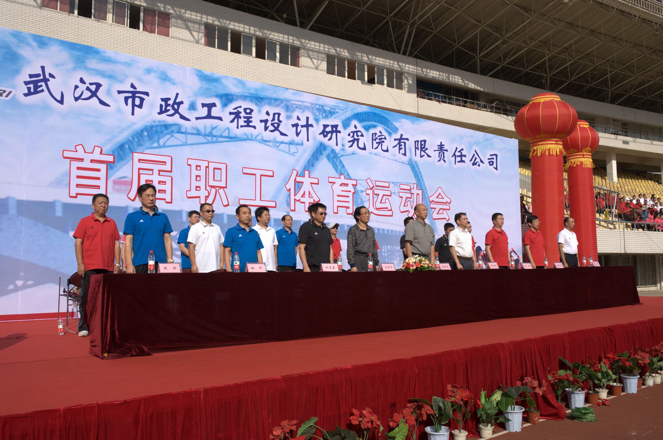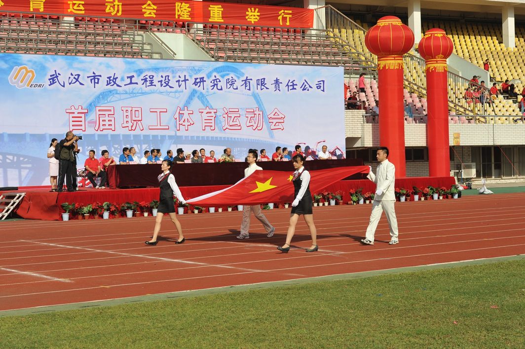 ??? 9月28日的漢口體育中心,彩旗飄揚(yáng),樂聲陣陣,在“我運(yùn)動(dòng),我健康,我快樂”的巨幅背景前,紅色的主席臺被妝點(diǎn)得分外喜慶,十只巨大的彩色氣球懸掛著運(yùn)動(dòng)會的宣傳標(biāo)語,烘托出熱烈的比賽氣氛。武漢市城建委黨組副書記、副主任熊明亮,武漢市城建委總工程師、首席市政工程專家龍世平,武漢市城建委工會主任朱宗信應(yīng)邀出席了開幕式,公司領(lǐng)導(dǎo)和各部門負(fù)責(zé)人在主席臺就坐。