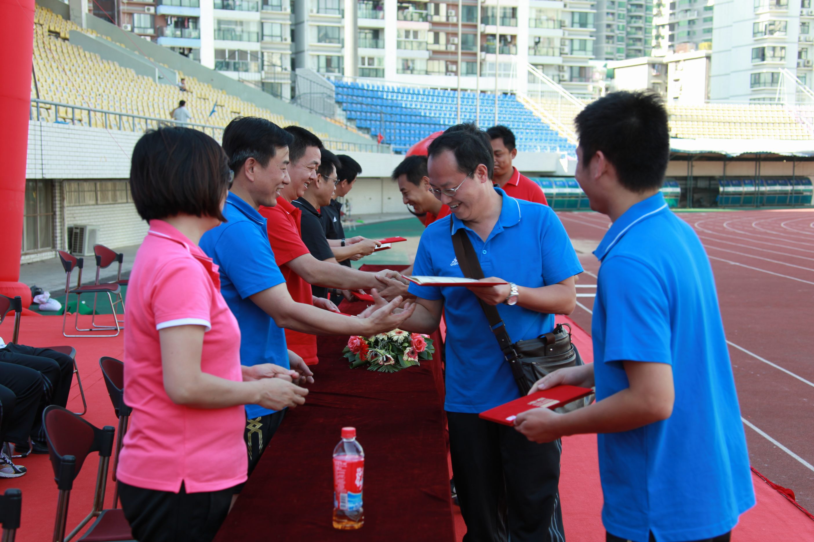 ??? 在閉幕式上舉行了隆重的頒獎(jiǎng)儀式,三十六名在比賽中發(fā)揮出色的運(yùn)動(dòng)員走到臺上,從公司領(lǐng)導(dǎo)手中接過榮譽(yù)證書,并接受了全場觀眾送出的熱烈的掌聲與歡呼聲。