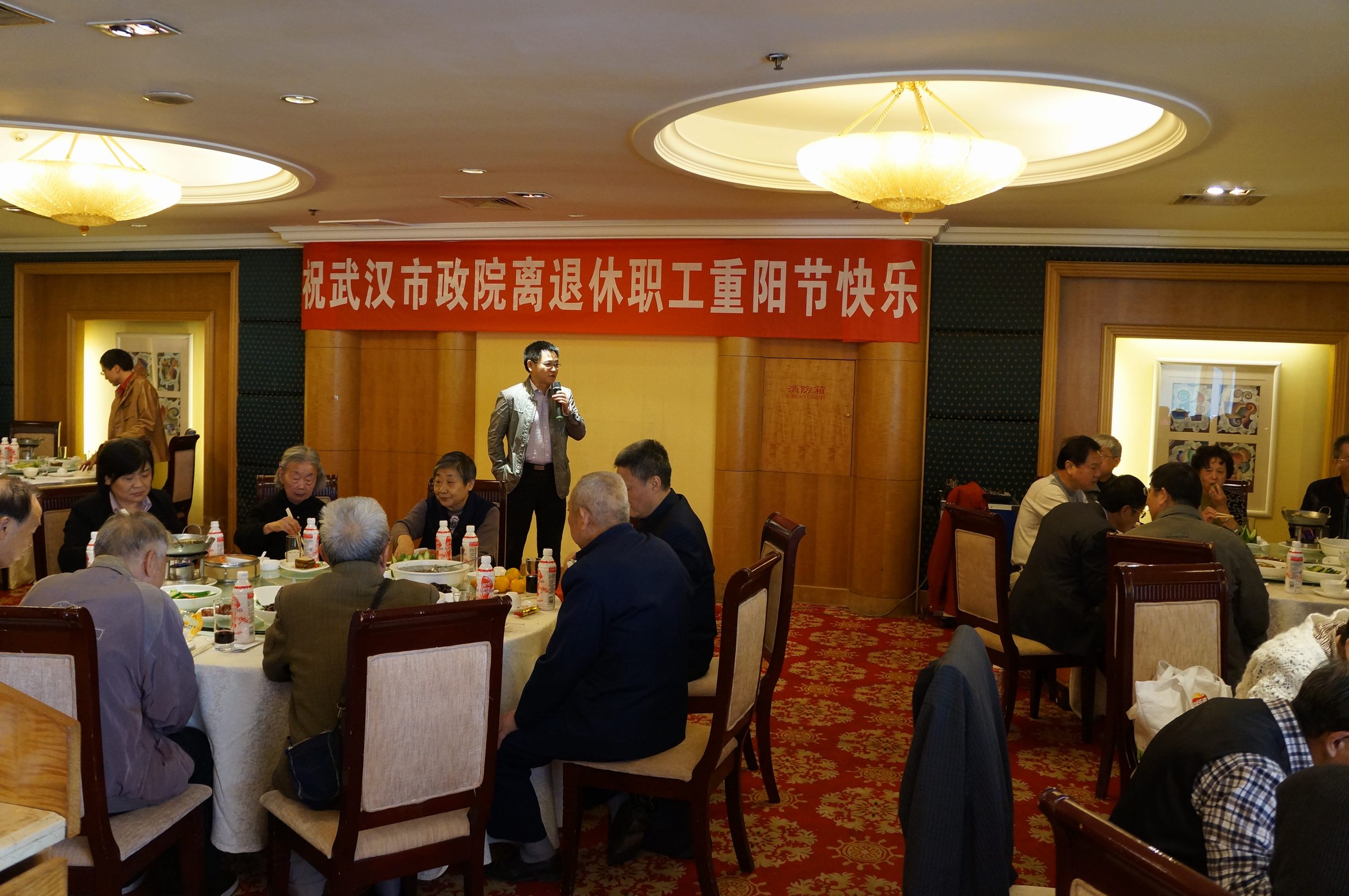 ??? 宴會上,柯昌春董事長對各位離退休職工致以節(jié)日的問候,并對他們?yōu)楣景l(fā)展所做出的貢獻(xiàn)表示感謝。各位離退休職工相互問侯著近況,一起回憶著過去工作時的光景,宴會現(xiàn)場一片其樂融融的景象。