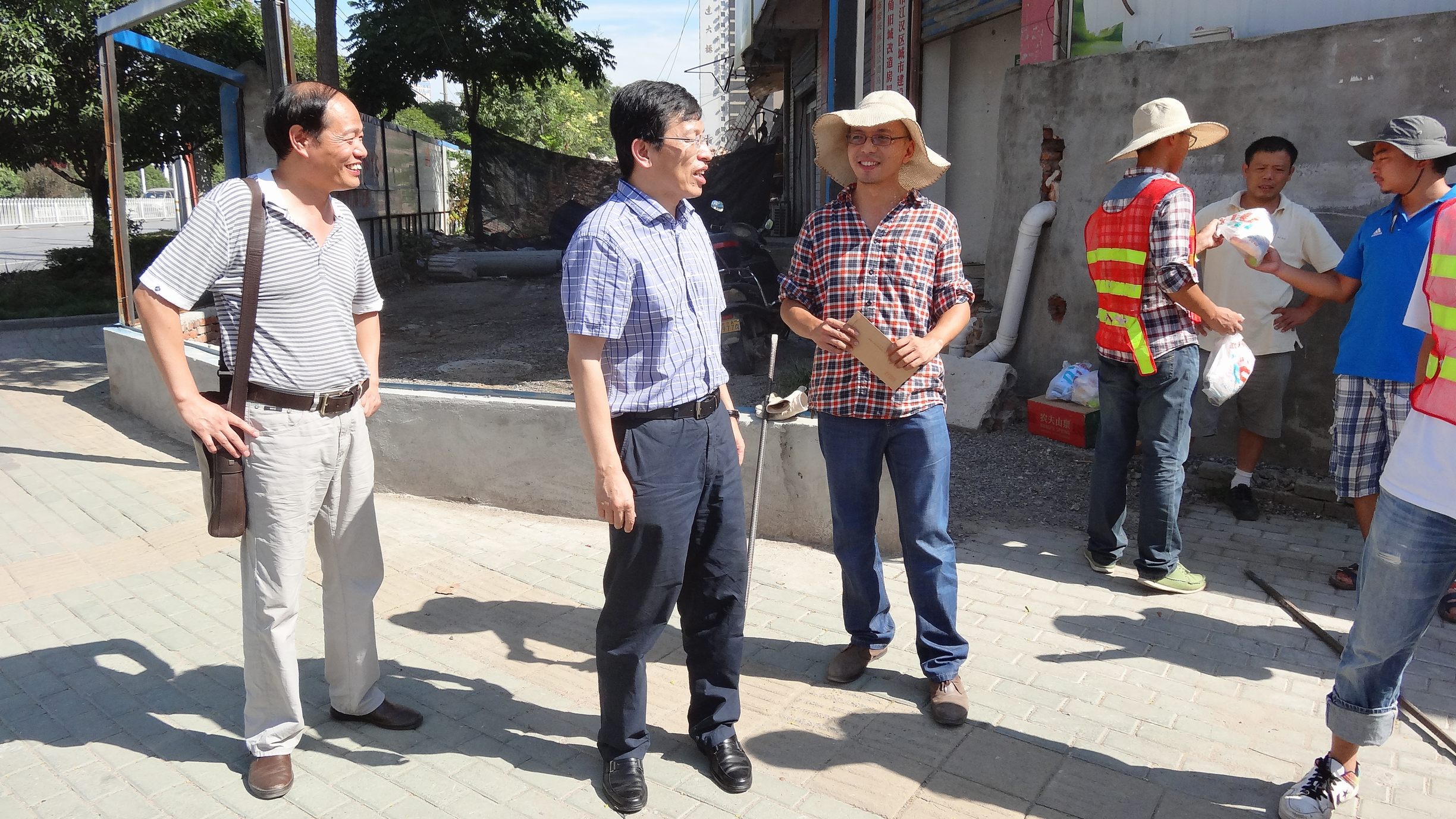 ??? 近段時(shí)間,武漢市出現(xiàn)了連續(xù)高溫天氣,但為了保障所承擔(dān)項(xiàng)目的按時(shí)推進(jìn),公司監(jiān)理、勘測、測試等外業(yè)人員仍然在烈日下堅(jiān)守工作崗位。8月16日,公司黨委書記蔡輝、副總經(jīng)理趙世杰、總經(jīng)理助理胡軍等一行在監(jiān)理公司、勘測設(shè)計(jì)院負(fù)責(zé)人的陪同下,對部分工地進(jìn)行了走訪慰問,為高溫下堅(jiān)持工作的員工送上一份清涼。