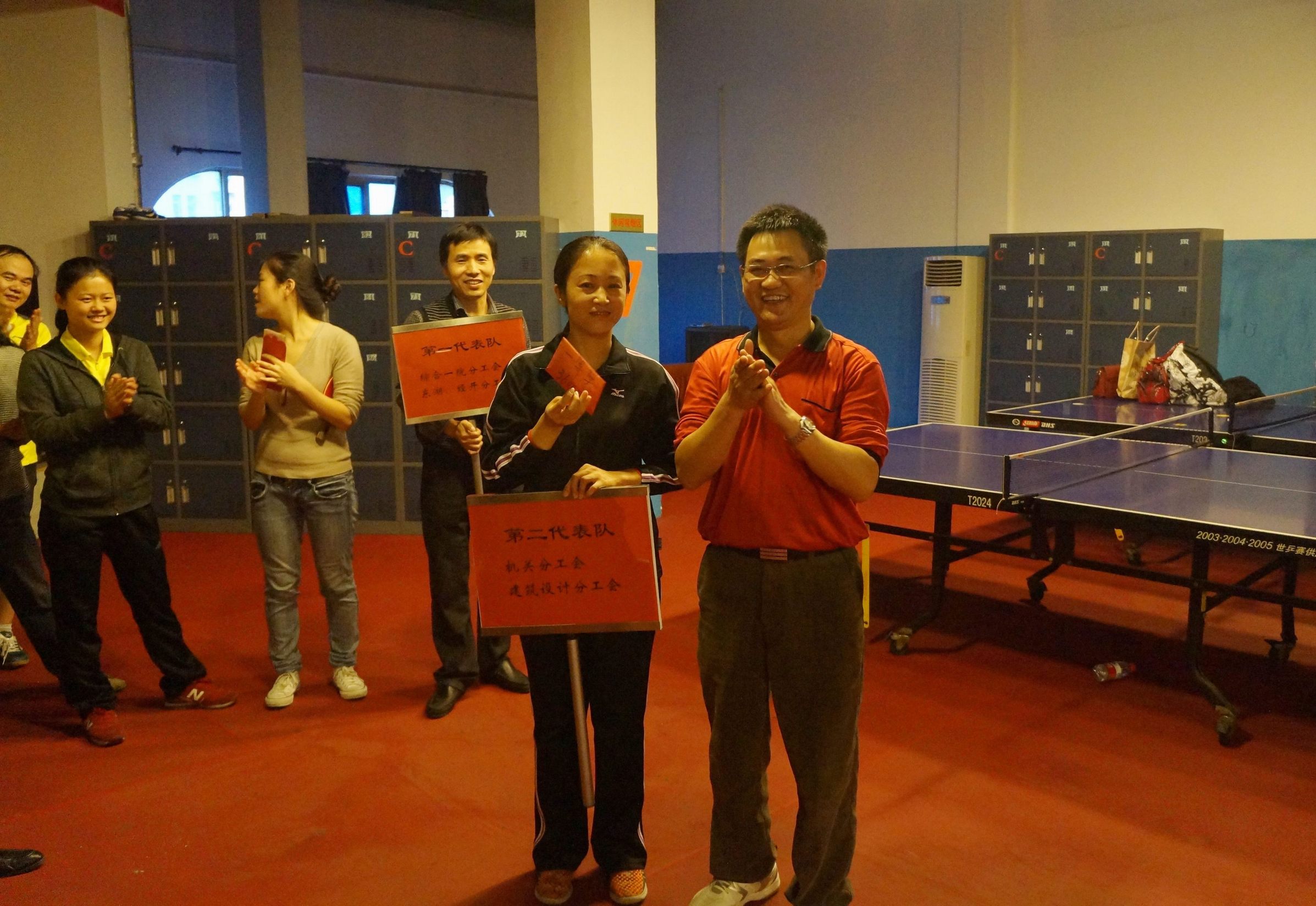 ??? 經(jīng)過(guò)激烈的角逐,由姚華總經(jīng)理領(lǐng)銜的機(jī)關(guān)分工會(huì)、建筑設(shè)計(jì)分公司分工代表隊(duì)獲得了冠軍;蔣樂(lè)副總經(jīng)理兼總工程師帶隊(duì)的綜合設(shè)計(jì)一院和東湖設(shè)計(jì)院、經(jīng)開設(shè)計(jì)院聯(lián)合分工會(huì)代表隊(duì)獲得了亞軍。公司領(lǐng)導(dǎo)為獲獎(jiǎng)代表隊(duì)頒獎(jiǎng)并合影留念。