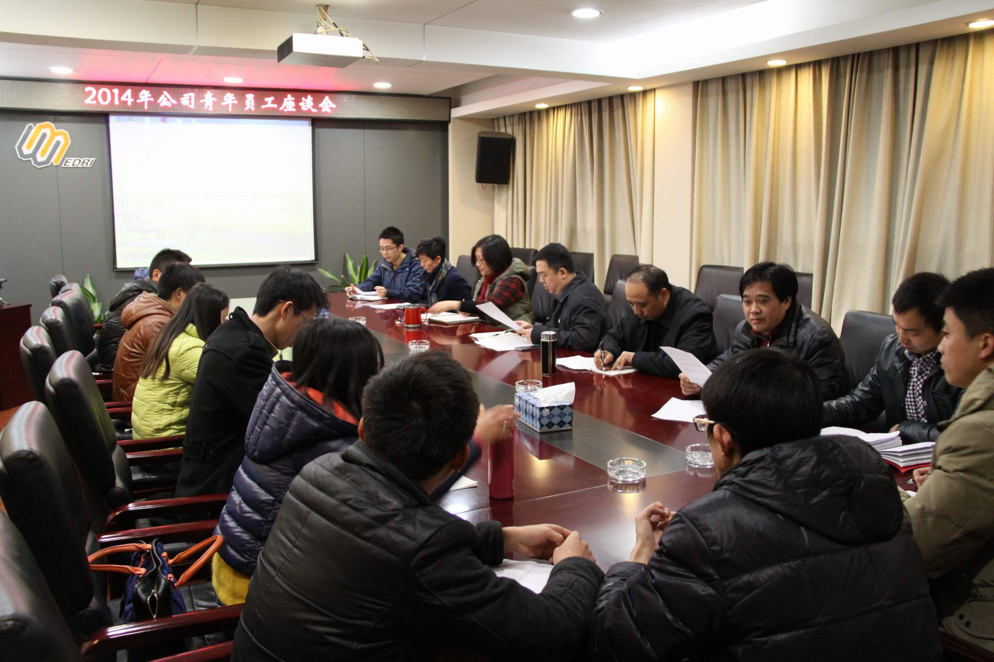 ??? 12月18日,公司在三樓會議室召開青年員工座談會,公司黨委書記蔡輝、副總經理兼總工程師蔣樂、總經理助理胡軍、公司副總工程師黃又清及相關部門人員參加了會議,來自各個部門的20余名青年員工代表參加了座談。