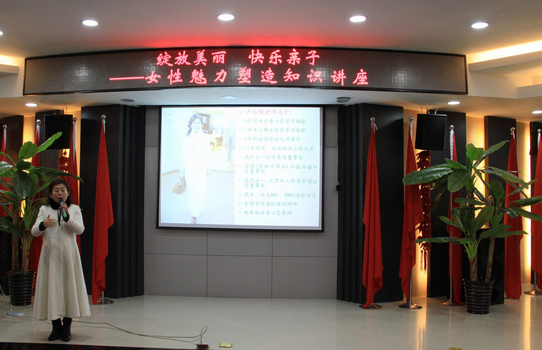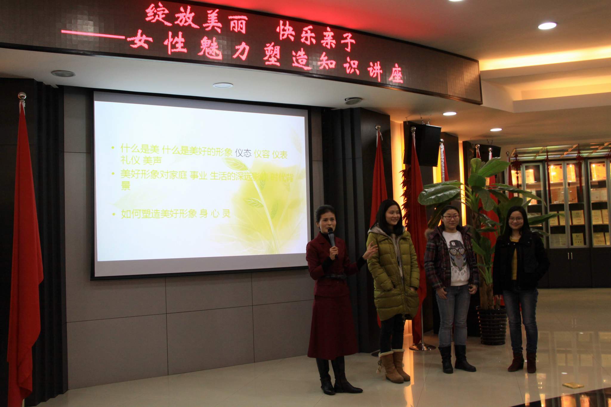??? 3月6日,為慶?!叭恕眹H婦女節(jié),公司在二樓會議室開展了以“綻放美麗,快樂親子”為主題的女性魅力塑造知識講座,邀請了合一信源集團(tuán)創(chuàng)始人、全國“家和萬事興”公益?zhèn)鞑ブ髦v師盧紅梅女士親臨授課,為公司女員工送上了一份溫馨的節(jié)日禮物,公司主要領(lǐng)導(dǎo)和全體女員工參加了講座。