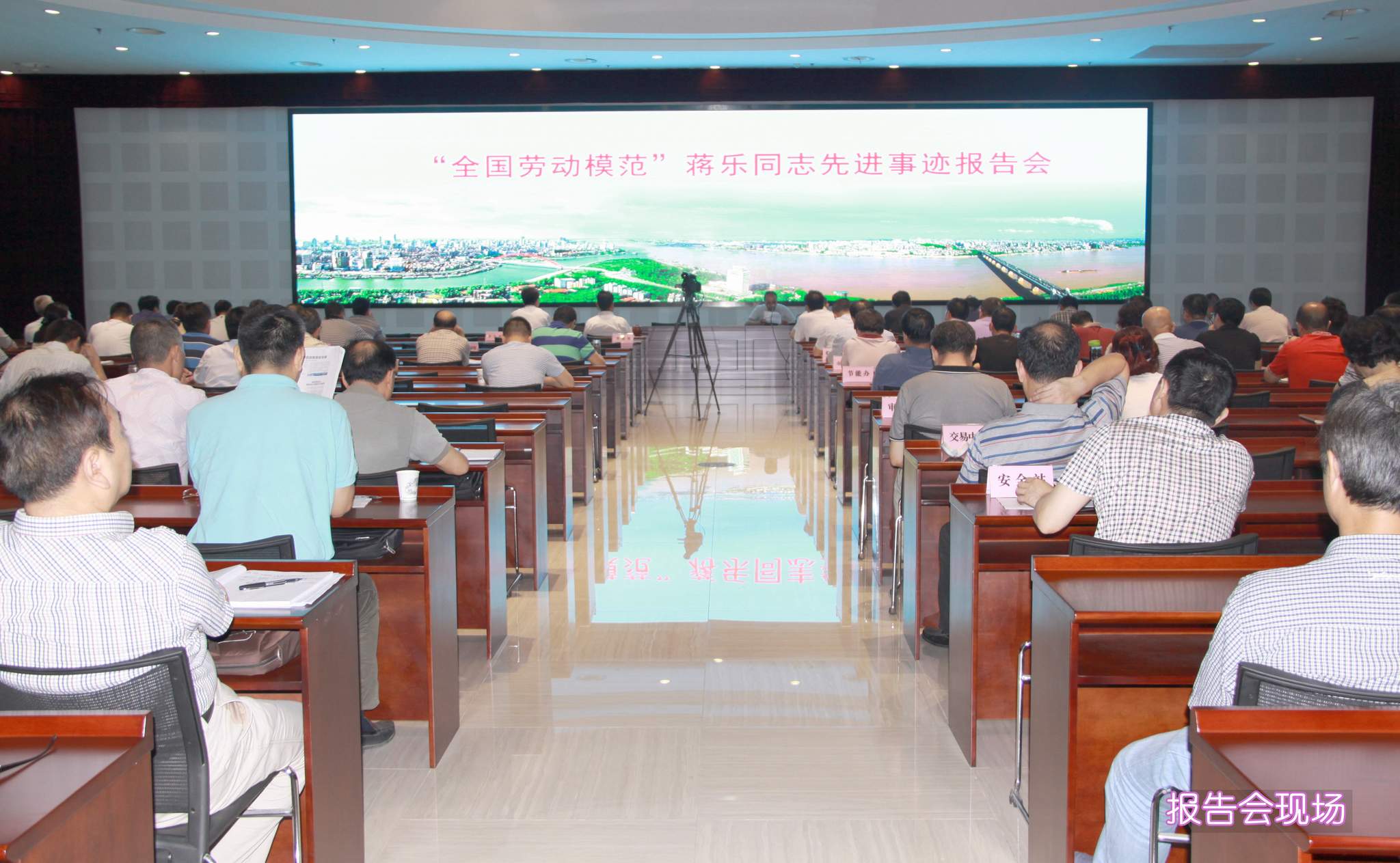 ??? 6月26日上午,市城建委一樓報告廳氣氛莊嚴(yán),座無虛席,“全國勞動模范”蔣樂同志先進(jìn)事跡報告會在這里舉行,來自全市城建系統(tǒng)的近兩百名工作者參加了大會,市城建委彭浩主任等領(lǐng)導(dǎo)出席大會,公司領(lǐng)導(dǎo)、黨支部書記參加了會議。