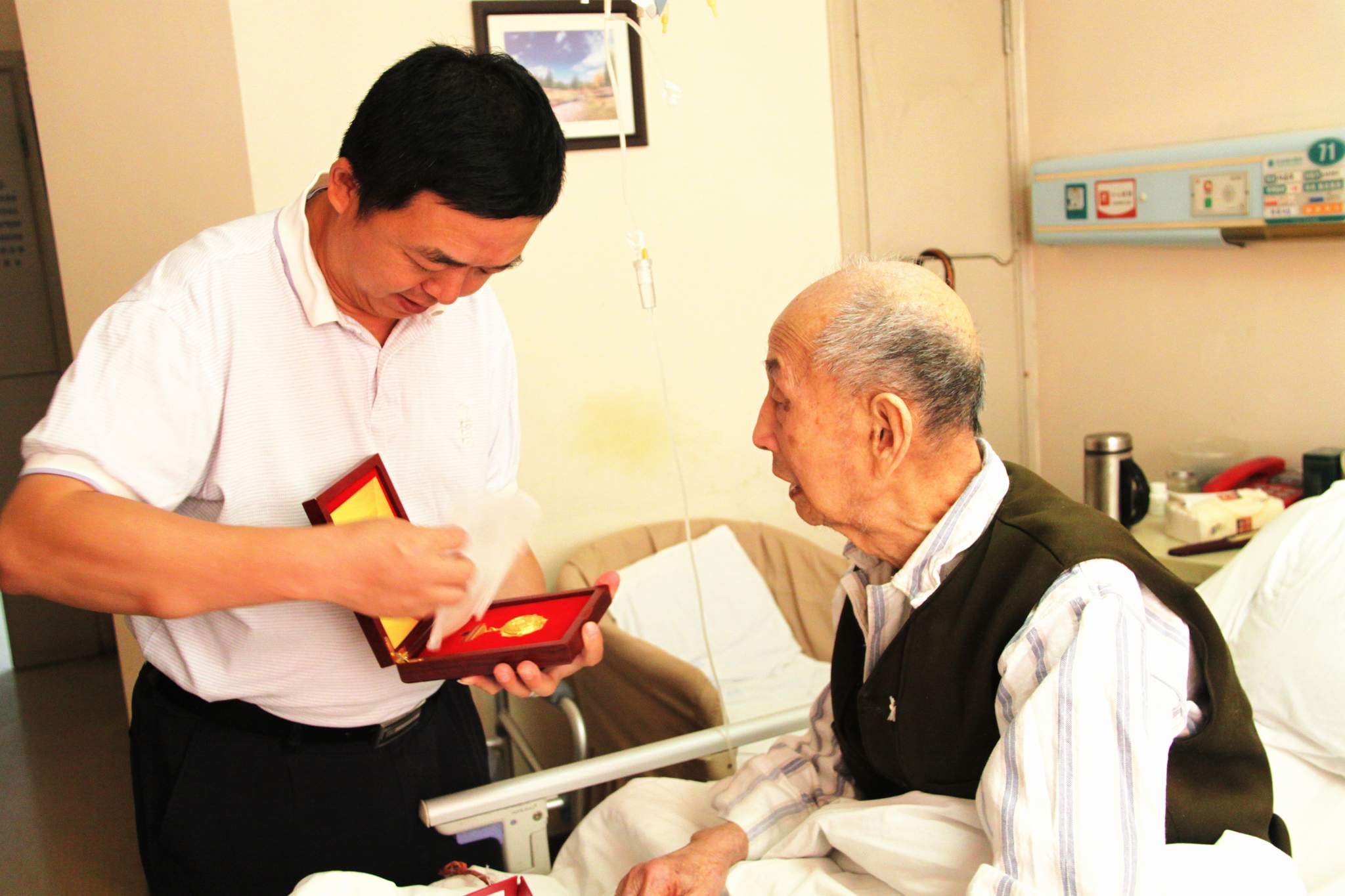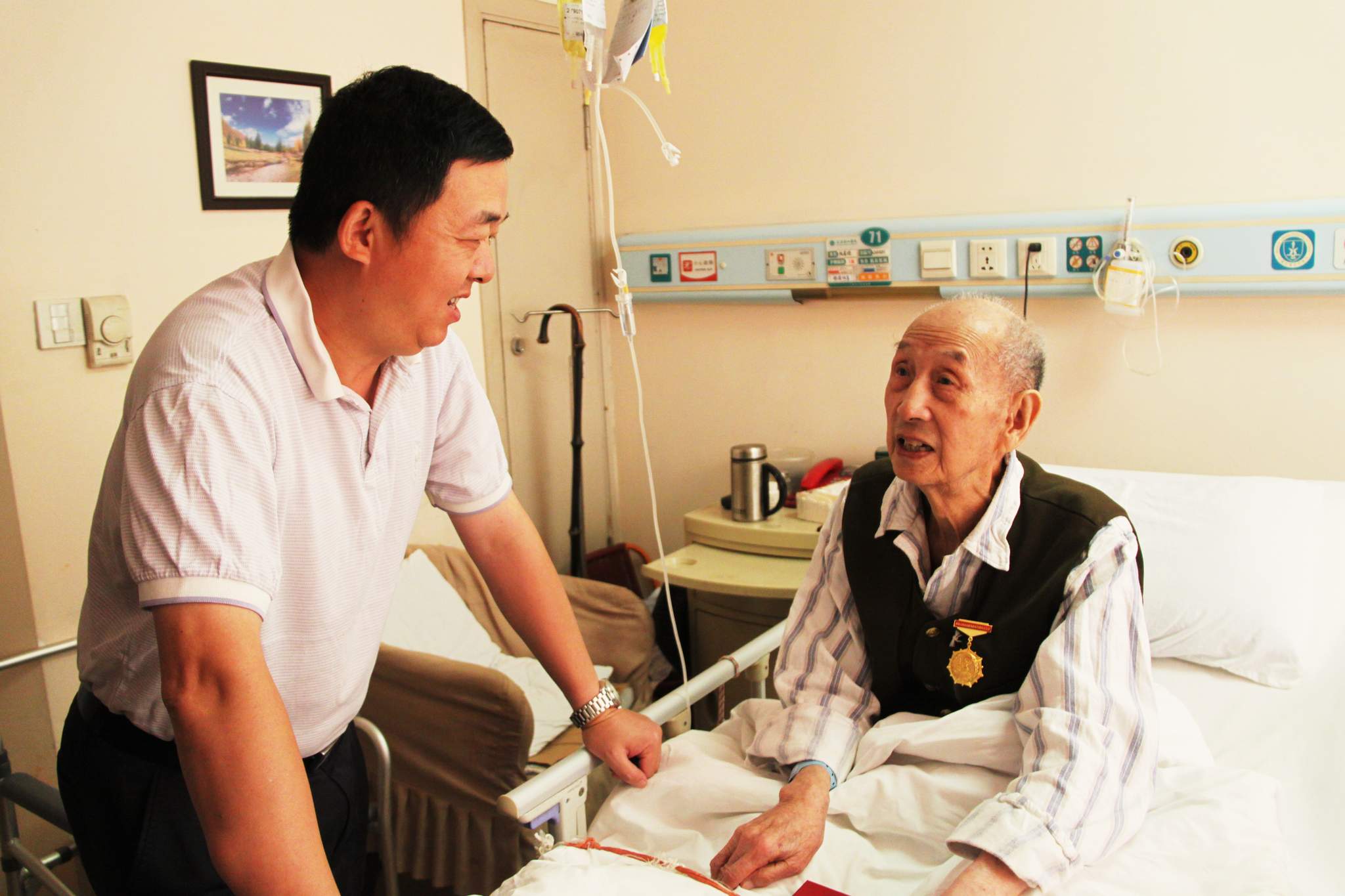 ??? 今年是中國人民抗日戰(zhàn)爭勝利七十周年,為了緬懷歷史,表達(dá)對(duì)革命前輩的敬仰之情,8月28日上午,公司黨委書記蔡輝等一行前往協(xié)和醫(yī)院,慰問公司抗戰(zhàn)離休老干部陳貴德同志。