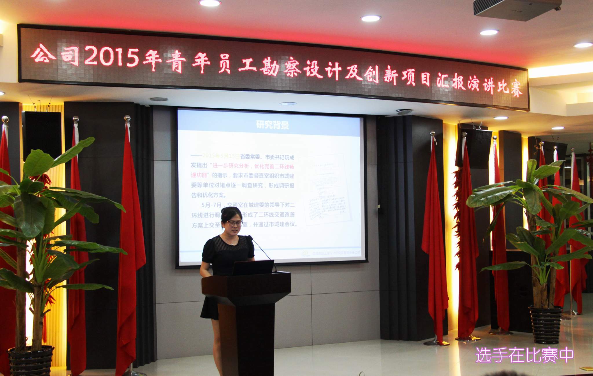 ??? 9月1日,一場以“創(chuàng)新”為主題的勘察設(shè)計(jì)及創(chuàng)新項(xiàng)目匯報(bào)演講比賽在公司二樓會議室隆重舉行。參加本次演講比賽的9位青年員工從各部門、各專業(yè)的精心選拔中脫穎而出,具備了一定的技術(shù)能力和演講水平,是青年員工中的佼佼者。 本次比賽吸引了近百名員工參加,由6名評委組成的評委會將根據(jù)演講人的綜合表現(xiàn)進(jìn)行評分,并以此為依據(jù)確定名次。公司領(lǐng)導(dǎo)、相關(guān)部門負(fù)責(zé)人出席了本次活動。