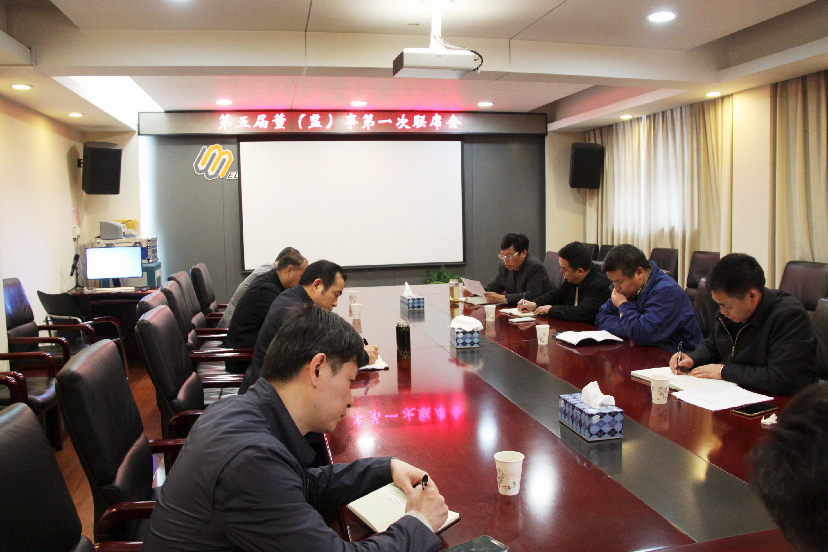 ??? 4月7日下午,公司在三樓會(huì)議室召開(kāi)第五屆董(監(jiān))事第一次聯(lián)席會(huì),就新一屆董事會(huì)、監(jiān)事會(huì)等相關(guān)事宜進(jìn)行了討論,第五屆職工持股會(huì)理事會(huì)理事長(zhǎng)趙世杰主持會(huì)議,市城建委政治處主任楊建春到會(huì)指導(dǎo)。