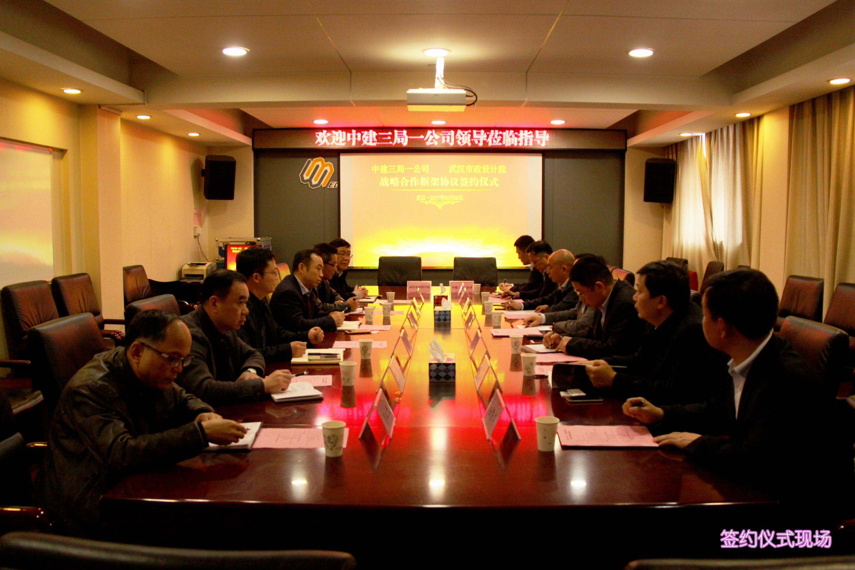 ??? 3月28日,公司與中建三局一公司“戰(zhàn)略合作框架協(xié)議”簽約儀式在公司西三樓會議室舉行,中建三局一公司黨委書記、總經理吳紅濤,副總經理萬大勇,司鵬飛、夏元云等參加了簽約儀式。