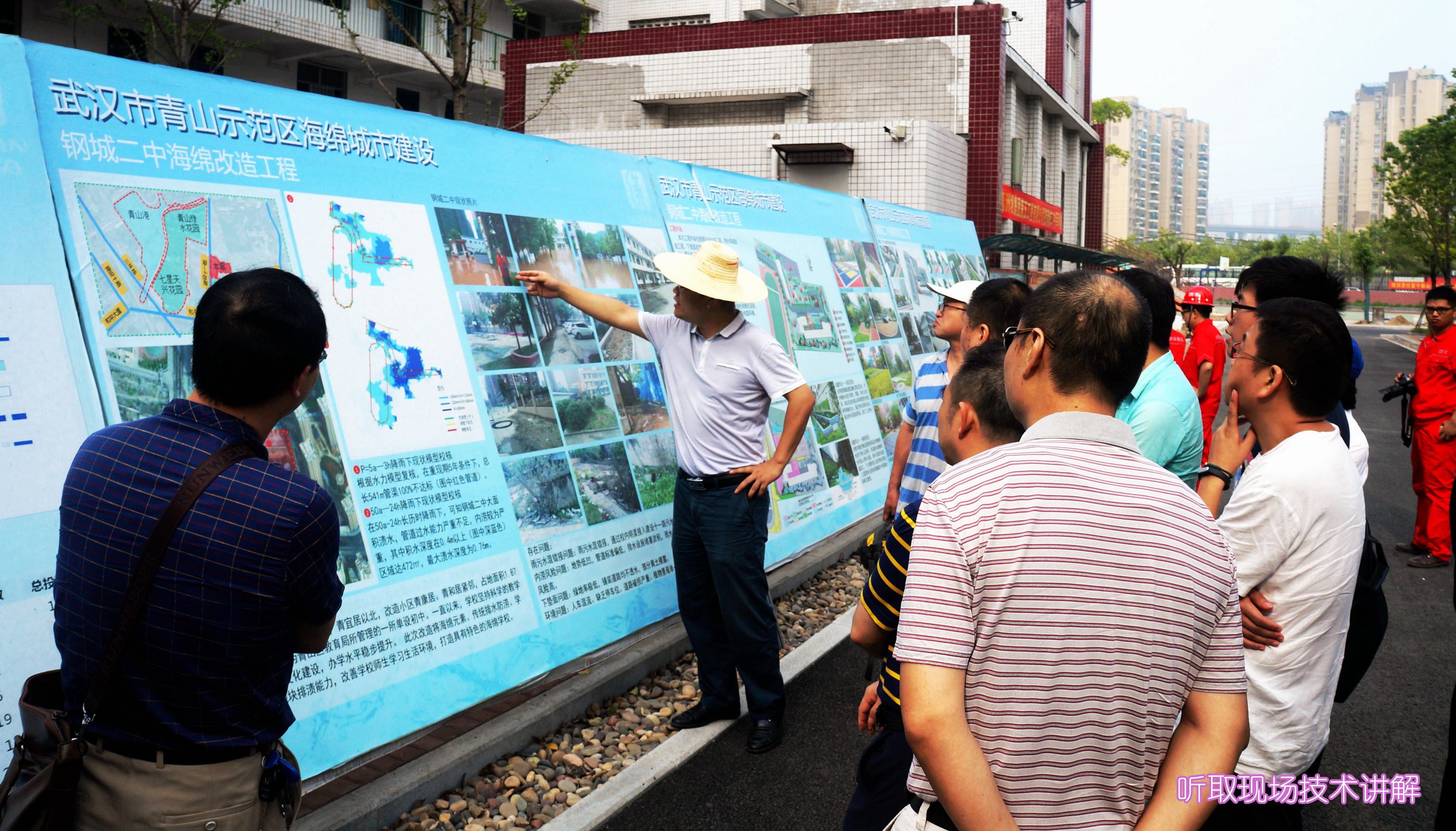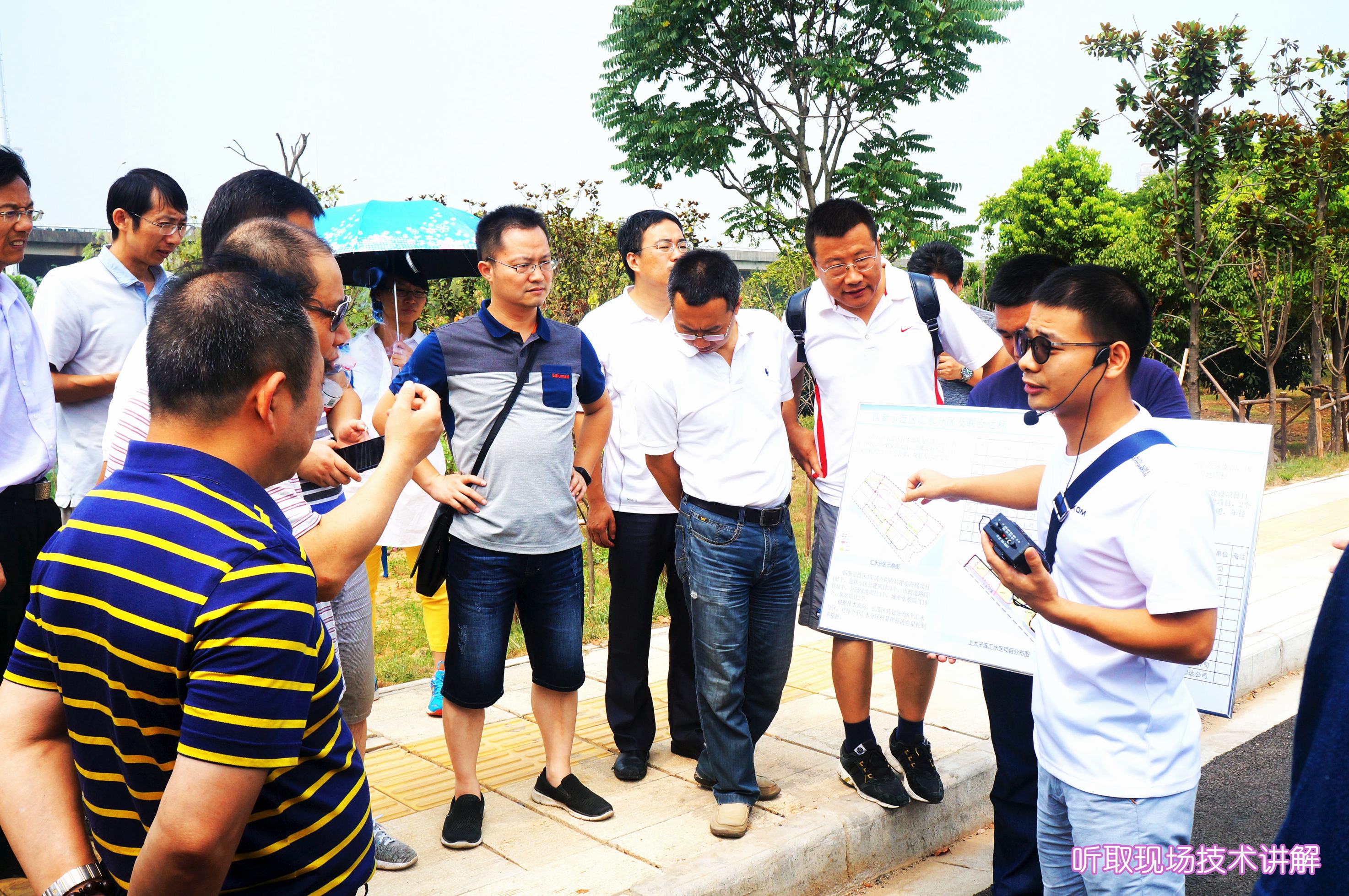 ??? 早上7點30分,參觀人員集中乘車,先后前往青山海綿城市建設(shè)示范區(qū)和四新海綿城市建設(shè)示范區(qū)進行實地參觀考察,聽取了公司主要設(shè)計人員關(guān)于海綿城市設(shè)計理念的介紹和取得的實際效果,并邀請施工單位負責(zé)人講解了海綿城市項目在施工中運用的技術(shù)和材料。參觀人員邊看邊聽邊記,詳細了解了海綿城市項目在設(shè)計、施工中的特點和需要注意的問題。
