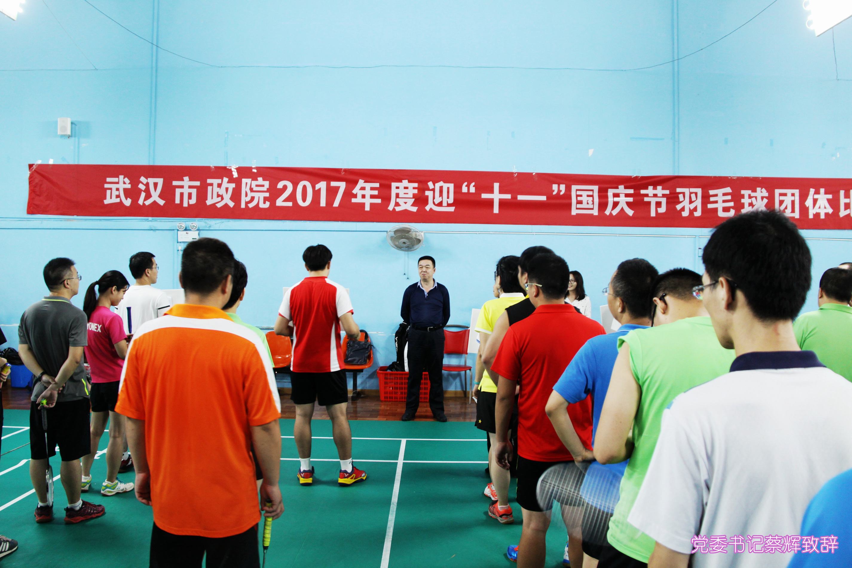 ??? 9月29日下午,公司在武漢CBD羽毛球館舉行“迎十一”國(guó)慶節(jié)羽毛球比賽,用這種獨(dú)特的方式慶祝偉大祖國(guó)的68歲華誕,共有40余名隊(duì)員報(bào)名參賽,黨委書記蔡輝在賽前致辭并宣布比賽開始。